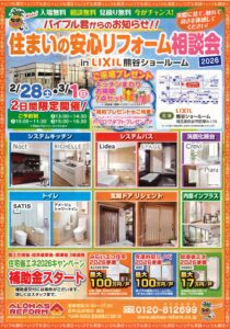 場所は、LIXIL熊谷ショールームをお借りして「住まいの安心リフォーム相談会2026」を行う予定です。