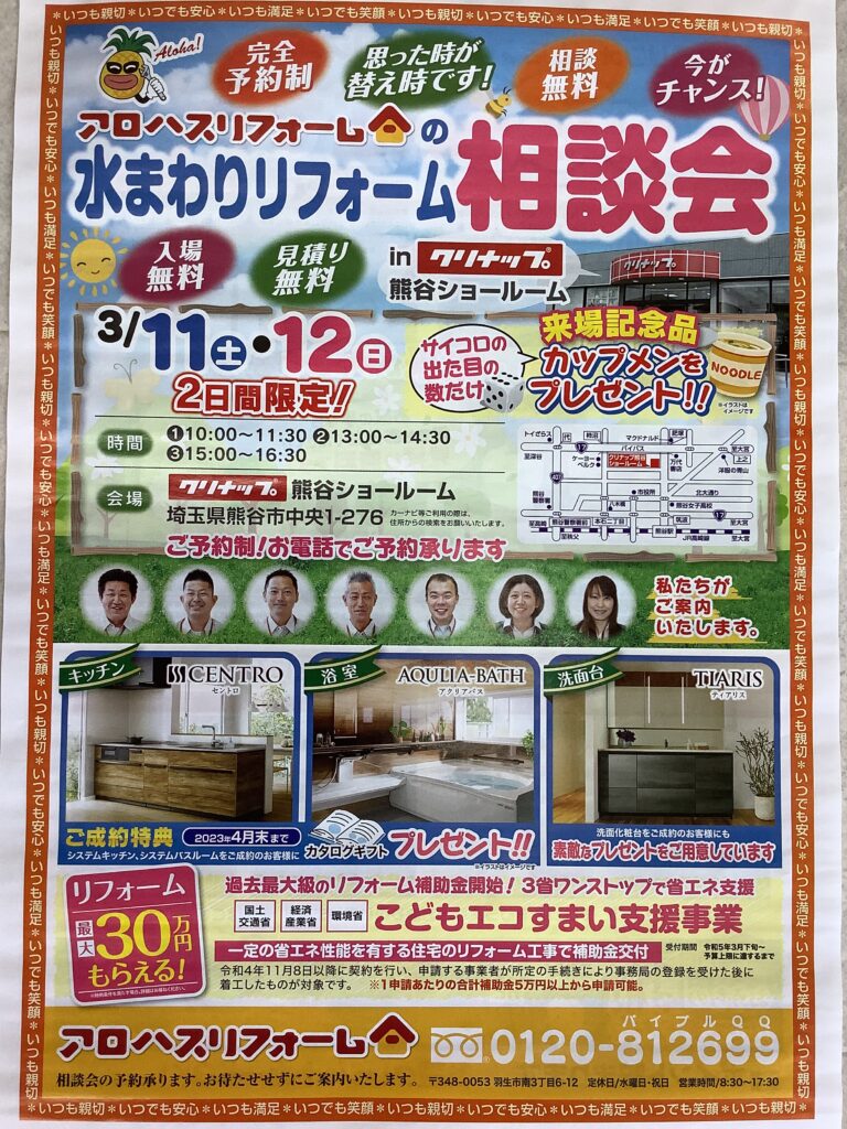 アロハスリフォームでは、3/11(土)・3/12(日)と