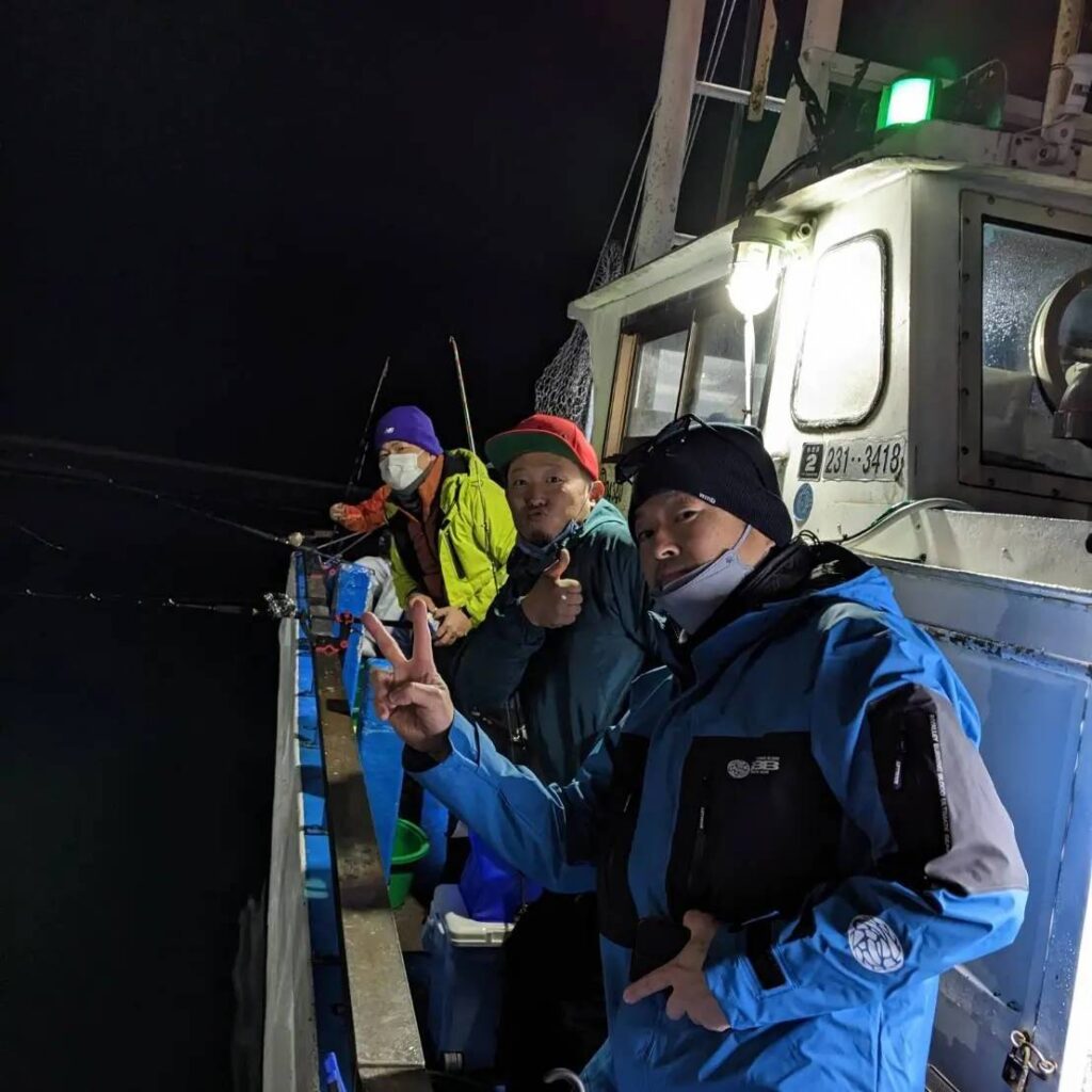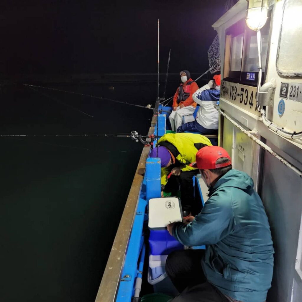 朝3時半頃に着きまして、まずは船の席取りです、今回は四人で行きましたので、船の真ん中辺を4列確保しました。