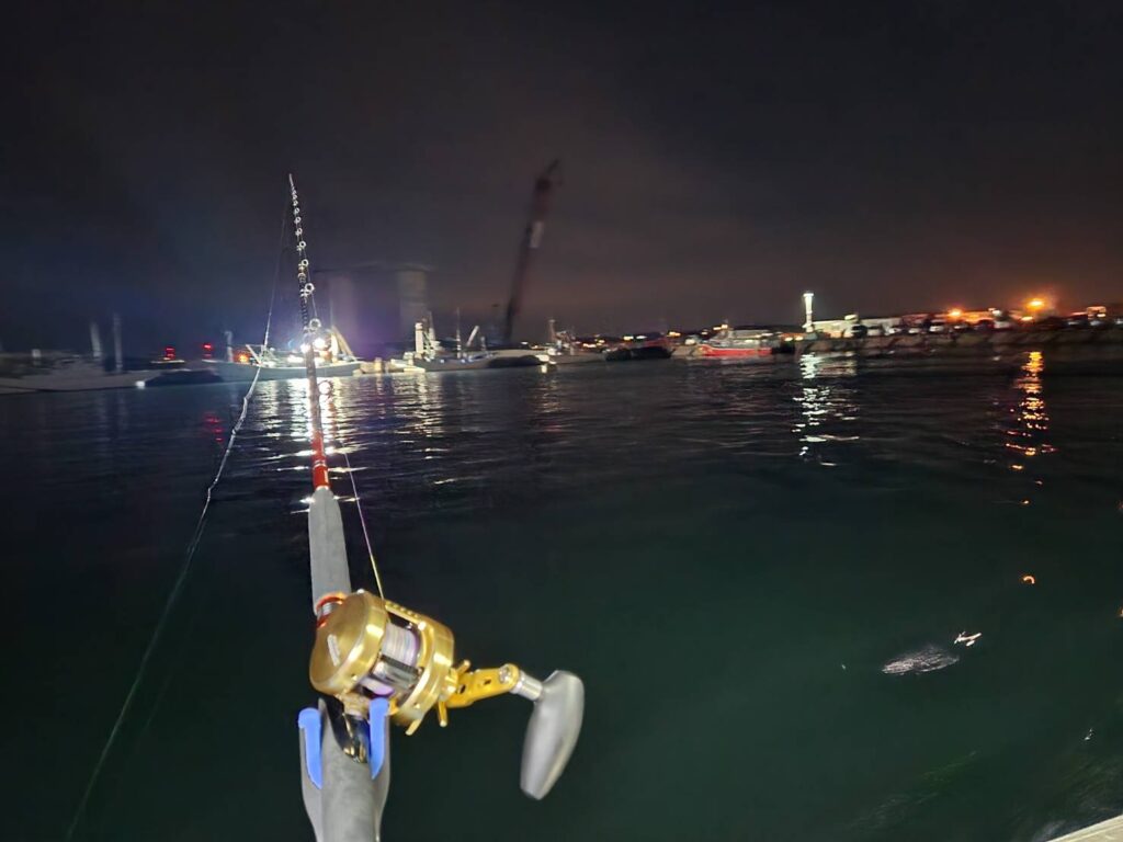 底まで重りとイワシの付いた仕掛けを落とし、そこから船長の指示に従ってタナを取って待つ!