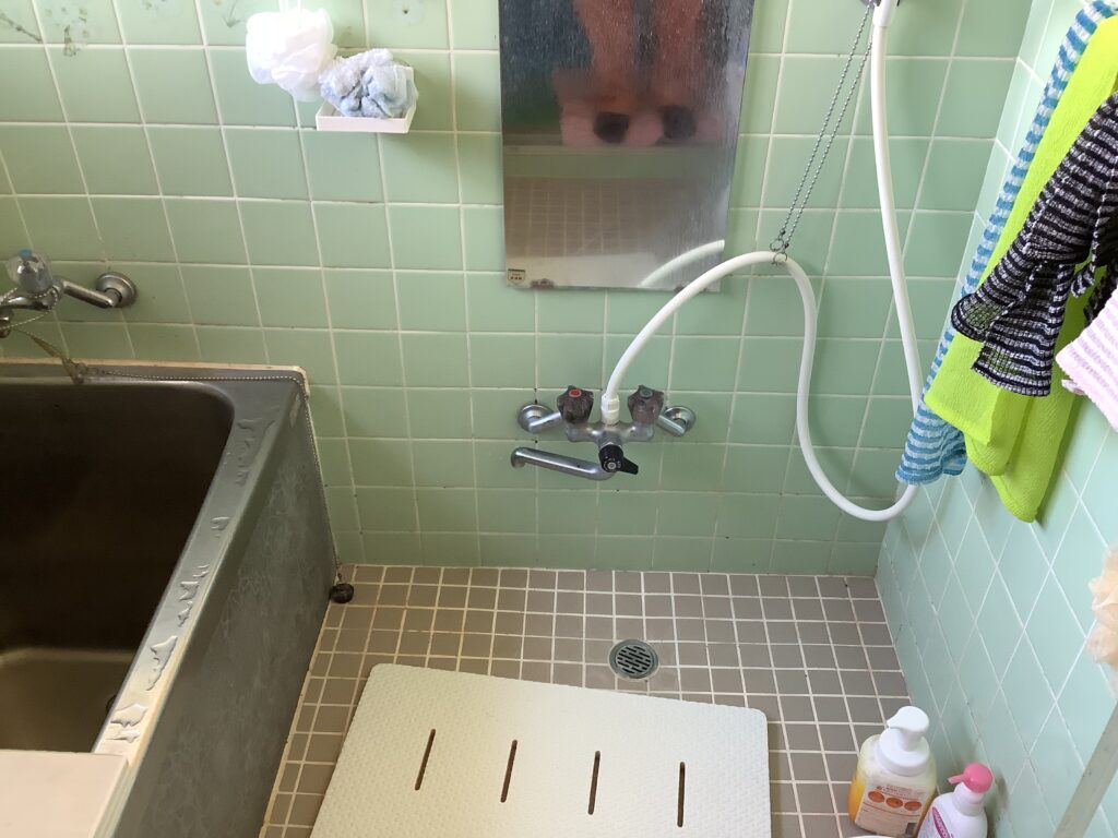 もともとの浴室は、床、壁がタイルで、ステンレスの浴槽です。