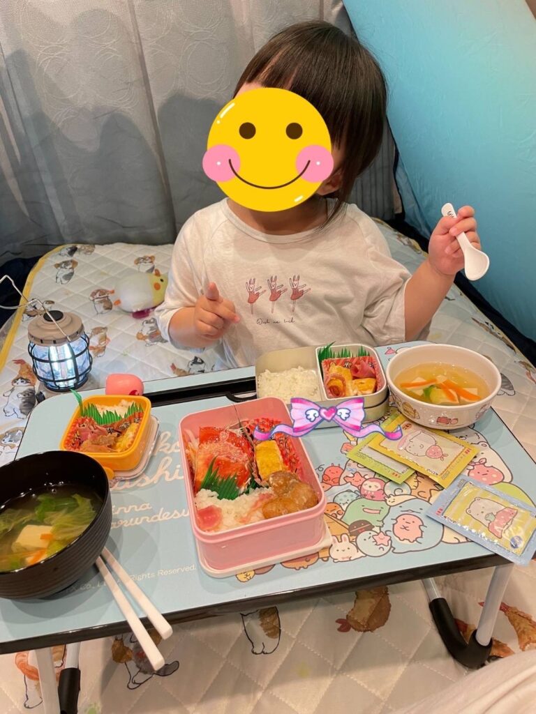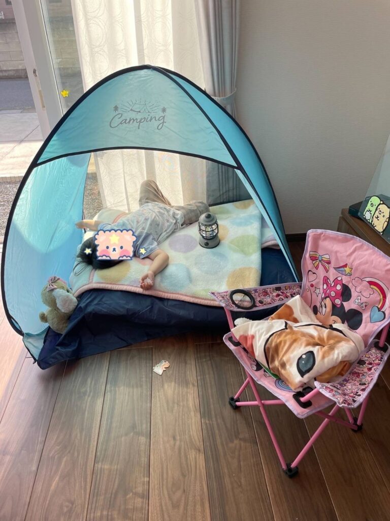 コロナ禍で遠出もなかなかできない為、おうちでキャンプごっこをすることにしました![]()