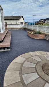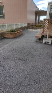 人工芝も検討しましたが、耐久年数が不安とのことで、一度で済む舗装で決定しました。