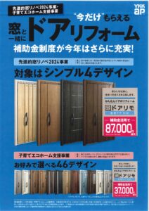 ・子育てエコホーム支援事業では、省エネ基準レベルの断熱性能を有するドア改修で補助金の対象になるほか、