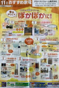 アロハスリフォームでは、この冬をぽかぽかに過ごせる暖房家電等もお取り扱いしていますので