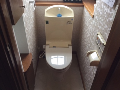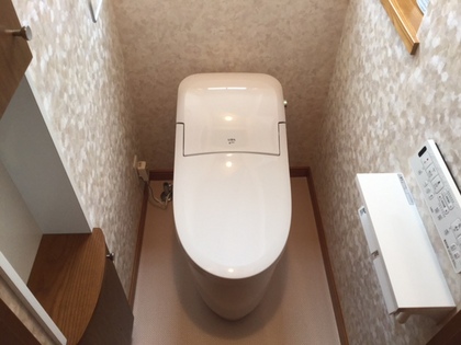 トイレ 事例詳細 羽生市Y様邸 トイレリフォーム トイレリフォ-ム after before after before 施工期間 1日 内容 ・LIXIL プレアスLS ECO5グレ-ド4 ・棚付2連紙巻器 ・床クッションフロア貼替え