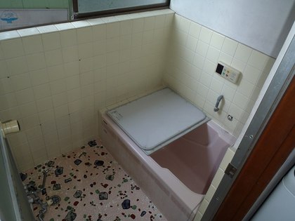 0.75坪のタイル床・壁のお風呂で、足を曲げないと入れない浴槽でした。