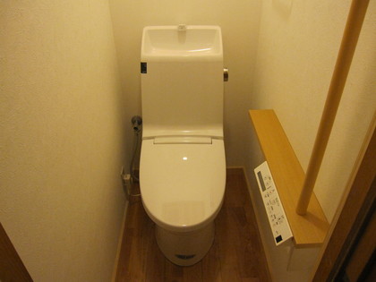 トイレ 事例詳細 行田市F様邸 トイレリフォーム トイレリフォーム 天井照明も同時にリニューアル after before after before 施工期間 1日 内容 ・LIXIL アメージュZ ・壁クロス貼り ・床工事(タイルから板張り) ・手すり付紙巻器 ・照明器具交換